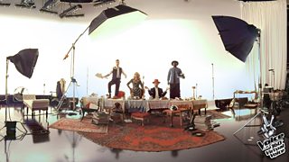 Click the videos below to peek around every angle, look up, look down and all around as you boogie on stage with our Coaches, snoop around their photo shoot, test your nerves with our virtual Audition, jam with our band, then practice your arpeggios in our VIP vocal warm-up.