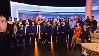 Guests include Nick Clegg, Natalie Bennett and Penelope Wilton.