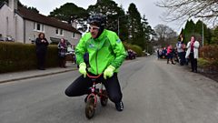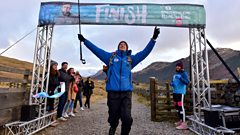Greg crosses the finish line to complete his epic Gregathalon!