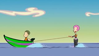 Seoras and Sandy have got a troublesome monkey that makes off with their boat!