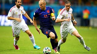 Live football commentary on Spain v Netherlands in their Group B match from Salvador.
