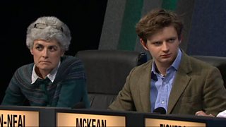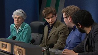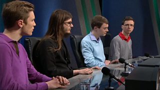 Jeremy Paxman asks the questions as two teams of students battle it out