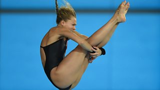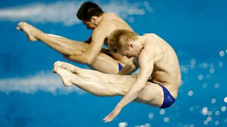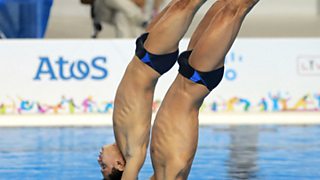 Coverage of the 3m/10m team diving event, including GB's Tom Daley and Rebecca Gallantree.