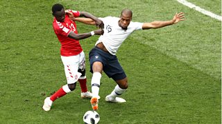 Live World Cup football commentary of Denmark v France from Moscow's Luzhniki Stadium.