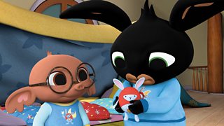 Bing is sleeping at Sula's house but has forgotten Hoppity!