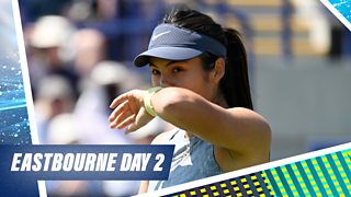 Katherine Downes presents live grass-court tennis from Eastbourne.