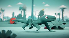 The cosmic adventures of astronauts Cosima and Dad on Proxima B, where they meet larger-than-life Big Lizard!