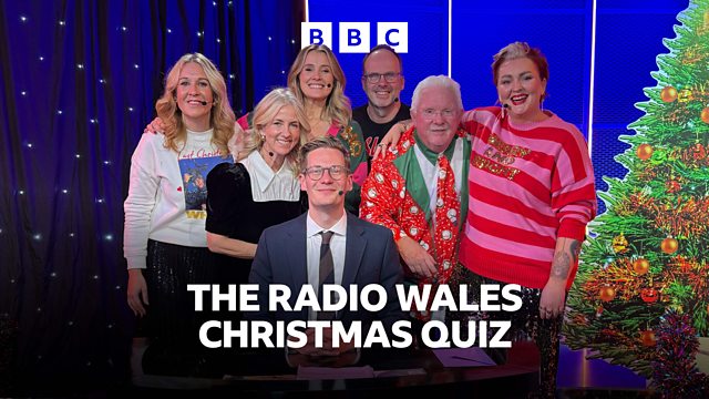Robin Morgan attempts to maintain order as team captains Eleri Si么n and Owen Money with their fellow Radio Wales presenters and a studio audience try to win the Christmas Quiz!