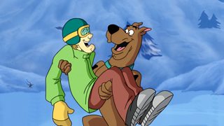 A see-through ice monster menaces a snowboarding competition.