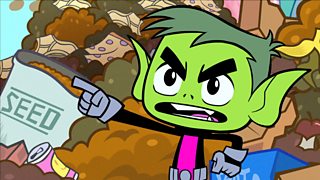 Beast Boy and his brain agree to take up gardening.