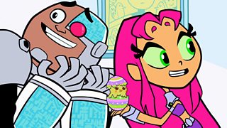 Cyborg and Starfire find a baby bird.