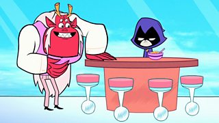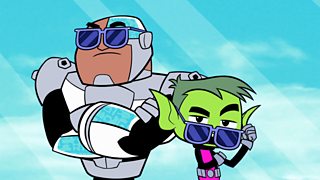 Beast Boy and Cyborg try a new way of eating - no chewing!