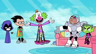Beast Boy and Cyborg insist on hiring a clown for a party.