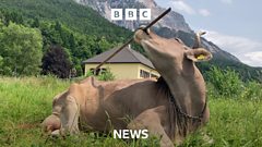 The clever cow who has found a way to scratch her back