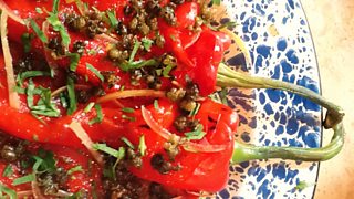 Sam Clark cooks the perfect Tapas dish- grilled peppers with crispy capers