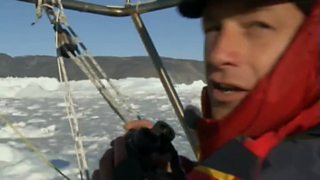 Half of the team get very close to a calving iceberg on board the expedition ship Gambo.