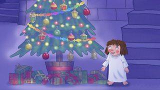 Bydd rhaid i'r Dywysoges Fach fod yn ferch dda os ydi hi am helpu i addurno'r goeden Na...