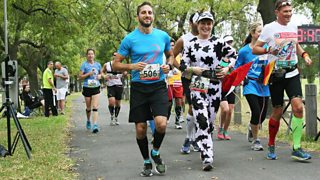 One woman's attempt to run 7 marathons on 7 continents in 7 days. Dressed as a cow!
