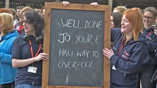Jo reaches the half-way mark to Liverpool.
