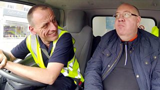Job applicant Andrew plots a delivery route, unaware potential colleagues are watching.