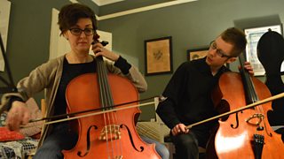Marie Louise dusts off her cello for her two daughters.