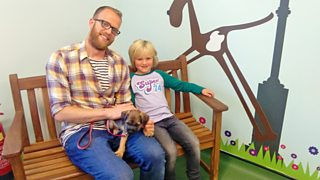 Twins Daisy and Lily are excited because Mum and Dad are bringing home their new puppy.