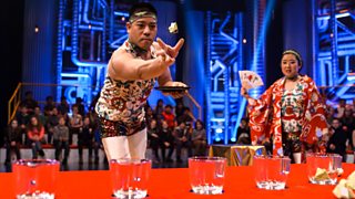 Featuring a human skipping rope and extremely competitive tea bag throwing.