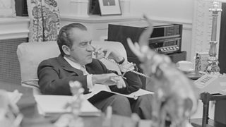 Mae sgandal Watergate yn gorfodi'r Arlywydd Nixon i ymddiswyddo, ac mae rhyfel cartref ...