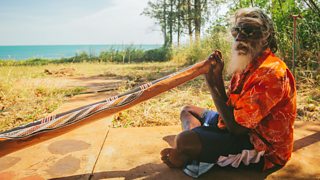 Yidaki playing on the beach