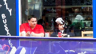 Lance tries to buy a pint and George shows off his untoward drawings.