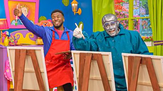 The Twirlywoos help a painter make an unusual work of art.