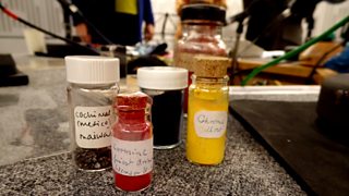 Artworks, minerals and other colour-related objects in the Forum studio