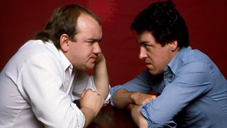 The Two Ronnies star in a Christmas programme of sketches, jokes and songs from 1987.