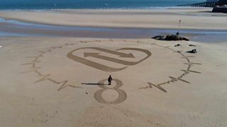Jan Lockett marks her life changing heart transplant with sand art every year on a beach