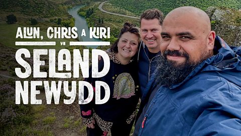 Mae Chris Roberts, Kiri Pritchard McLean ac Alun Williams ar daith drwy Seland Newydd. Chef Chris Roberts, comedian Kiri Pritchard McLean, and presenter Alun Williams visit New Zealand.
