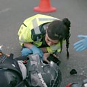 A 17 year-old motorcyclist collides with a van