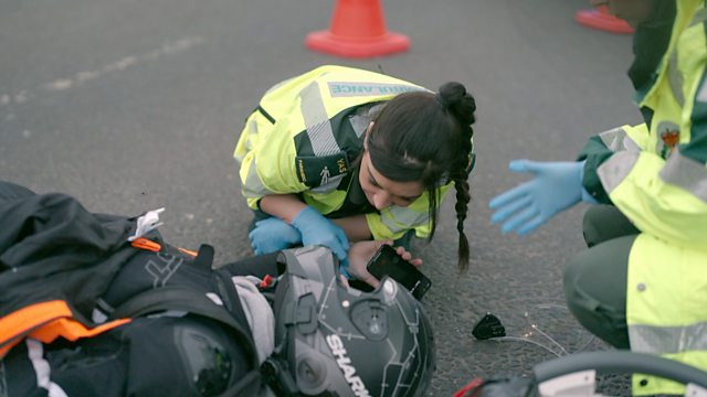 Kirsty and Kerrie tend to 17-year-old Joey who has broken his leg in a motorbike crash.