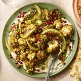 This spiced roasted cauliflower with a tahini, yoghurt dip makes a brilliant mezze dish.