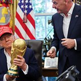 Photo: Fifa President Gianni Infantino shows US President Donald Trump the World Cup Trophy in the Oval Office. Chip Somodevilla