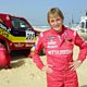 Photo: Germany's Jutta Kleinschmidt on the beach after she became the first woman to win the grueling Paris-Dakar rally 21 January 2001 in Daka. (Credit: AFP via Getty Images)