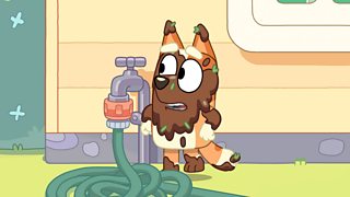 Mae Dad yn mynnu aros pum munud arall am fwyd pryd ar glud ond mae Blwi a Bingo yn aflo... (A)