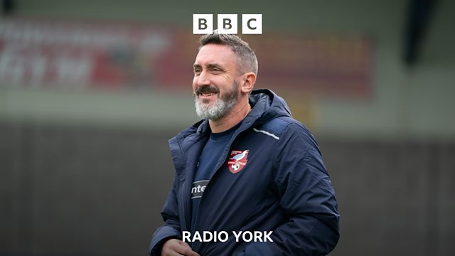 Scarborough Athletic manager Jonathan Greening speaking to James Fletcher after their 4-1 win at Radcliffe.