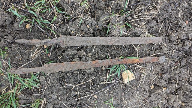 In the village of Willersey, novice metal detectorist Glenn describes the moment he found two incredibly rare Roman cavalry swords.