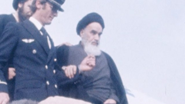 (Picture: Ayatollah Khomeini exiting plane. Credit: AP)