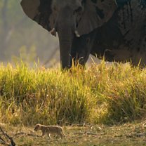 Serami鈥檚 cubs show remarkable survival instincts when threatened by a herd of elephants.