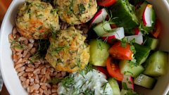 Greek-style turkey meatball grain bowl