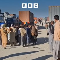 (Picture: Lorries and a group of people congregating at the border of Pakistan and Afghanistan. Credit: 麻豆社)