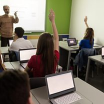 (Image: Rear view of a large group of high school students in a computer lab. They have laptops on their desks. Credit: Getty Images)