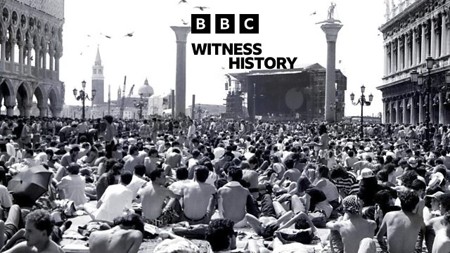 In July 1989, Pink Floyd played a free concert to 200,000 people in Venice, Italy. The British rock band took to a stage made of floating barges as crowds of fans watched from boats, gondolas and rooftops. The show was also broadcast worldwide to an estimated 100 million viewers in over 20 countries.