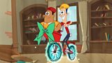 Tha Alvin a briseadh baidhc Theodore. Alvin breaks Theodore's bicycle. (R)
